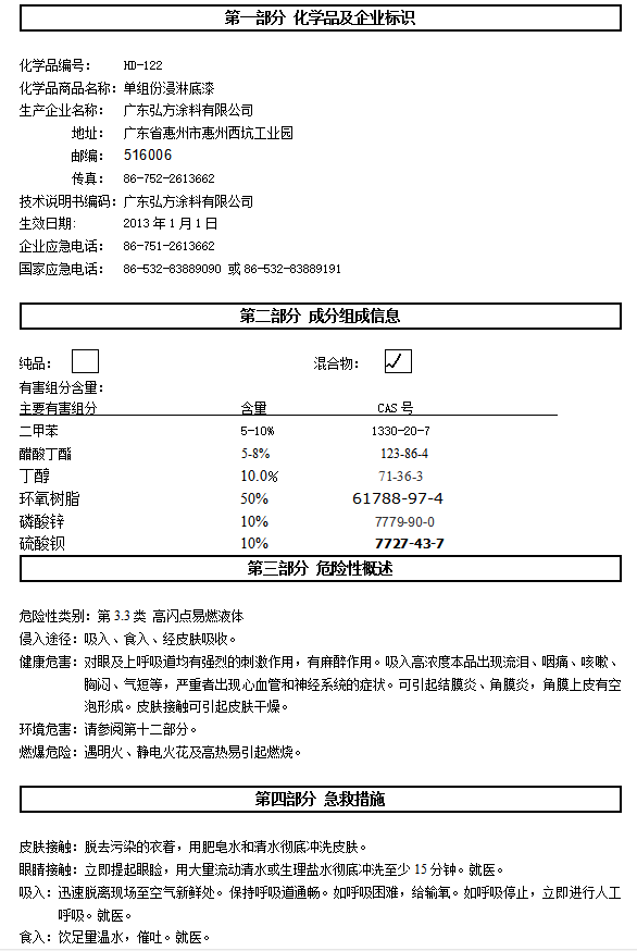 产品总述 HD-120 是由改性环氧树脂和防腐颜料制成的快干型底漆。
